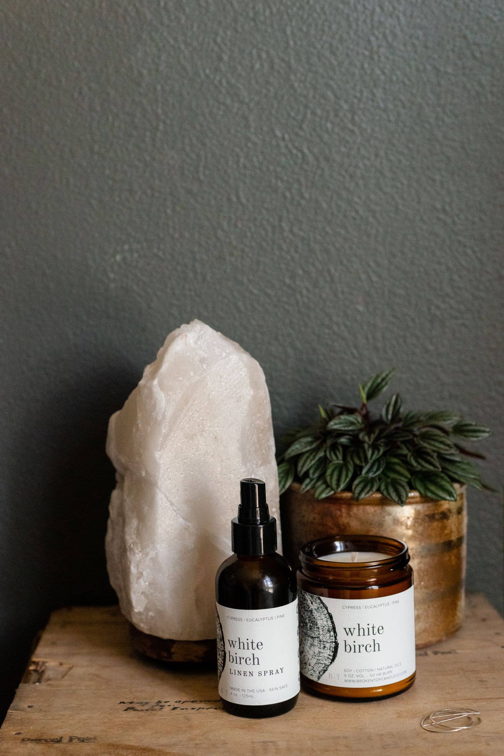 Crisp, clean, and refreshingly cool — White Birch captures the essence of mountain air and freshly fallen snow. Notes of evergreen cypress and pine blend with minty eucalyptus for an invigorating fragrance that feels both pure and grounding. Hand-poured in Bend, Oregon, this 9 oz soy candle delivers a 50-hour burn with a smooth, even melt.